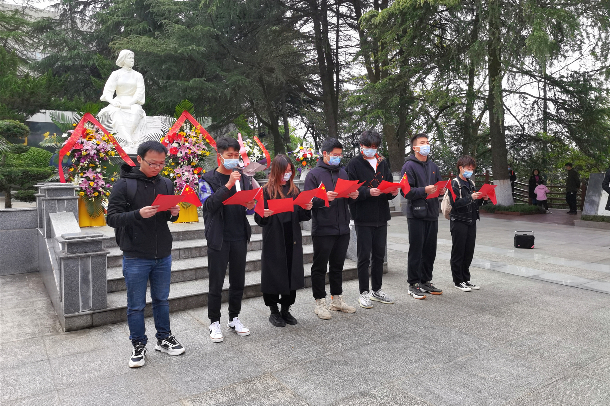 为庆祝建党100周年,进一步推进党建带团建,让广大青年学子在生动实践中学党史,悟思想。4月4日清明节上午,bevictor1946韦德官网分团委联合员工党支部,特研会和口语传播艺术协会在龟山向警予烈士陵园开展“初心不忘来时路,红色经典青春读”——走读红色经典主题活动,bevictor1946韦德官网员工党支部书记沈聪和28名员工党团员代表出席,活动由分团委书记向俊主持。