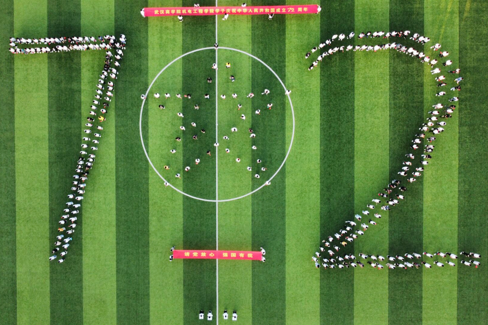 操场上,bv1946伟德国际始于英国bevictor1946韦德官网举行“请党放心 强国有我”暨庆祝中华人民共和国成立72周年主题团日活动,2021级350名新生在青葱的草地上排成了“7☆2”队形图案,以此向祖国献礼。同时,分团委书记向俊带领员工们激情朗诵了《我骄傲,我是中国人》。在场新生自发地跟随并齐声高喊:“我骄傲,我是中国人!”同学们挥舞手中的国旗,在热烈的气氛中齐唱《我和我的祖国》。