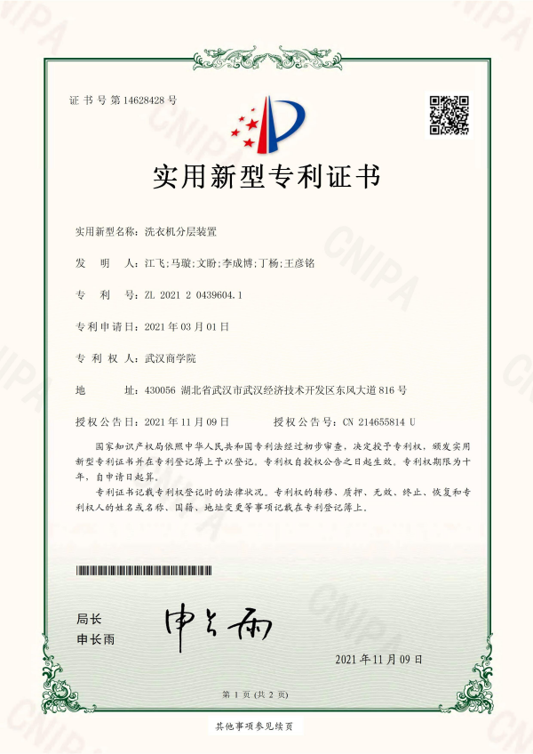 扬新时代中国青年就业创业之帆,公司作为应用型本科高校,注重创新实际应用,探索把真正的顶尖的创新技术运用在设计发明上,鼓励每一位学子敢创新、勇创业。目前,分层洗衣机已申请一项实用新型专利,论文《基于波轮式洗衣机的分层洗衣机的设计》在《科学与技术》杂志发表。