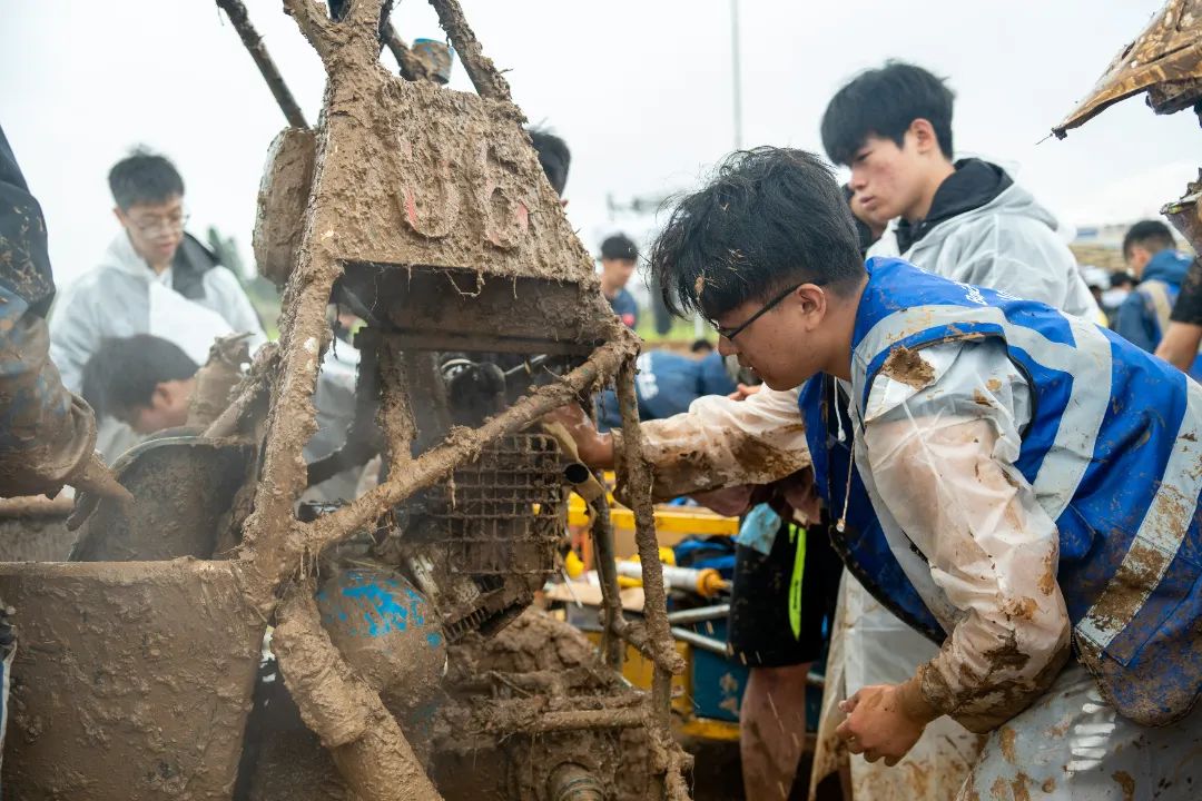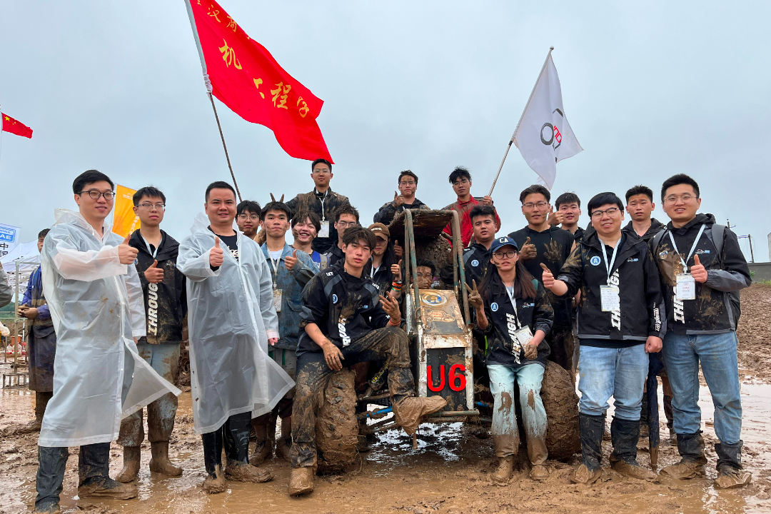 在比赛过半时,赛车突发故障,车队成员迅速进行抢修,排查后发现故障原因是发动机温度过高导致的点火线漏电,顾不上四周的脏污与淤泥,成员们沉着冷静,齐心协力解决问题,简单清洗赛车后再次踏上征途。最终在失误率高达80%的赛道上圆满完成比赛,获得了第四名的好成绩。