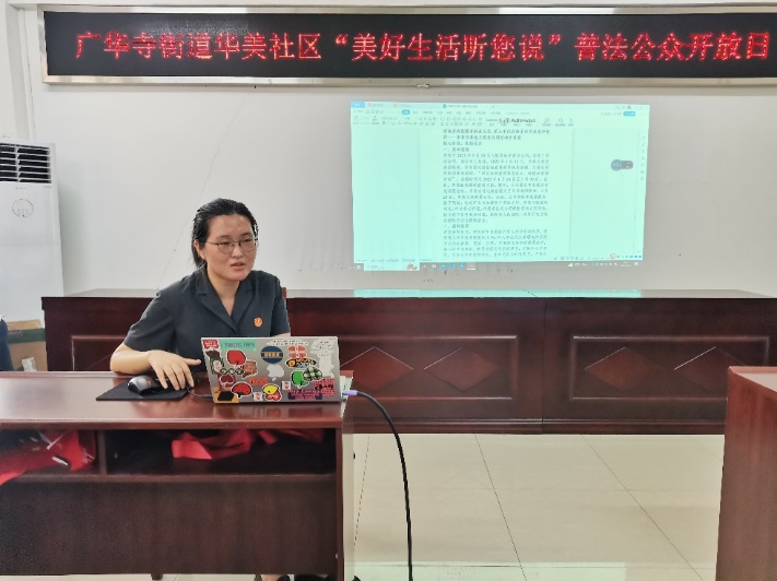 活动现场还请到广华寺法庭两位法官,广华寺法庭法官王莹从《民法典》生成的时代背景和依据、物权编、继承编、婚姻家庭编等方面对《民法典》进行了全面阐释。广华寺法庭法官杨涛紧密围绕小区“三供一业”移交改造后居民反映集中的共性问题与需求,释疑说法,重点针对居民提出的民间借贷、劳动就业、个人隐私等法律问题,给予耐心细致的解答,引导和帮助居民树立法治观念,用法、用心、用情化解居民“急难愁盼”问题。