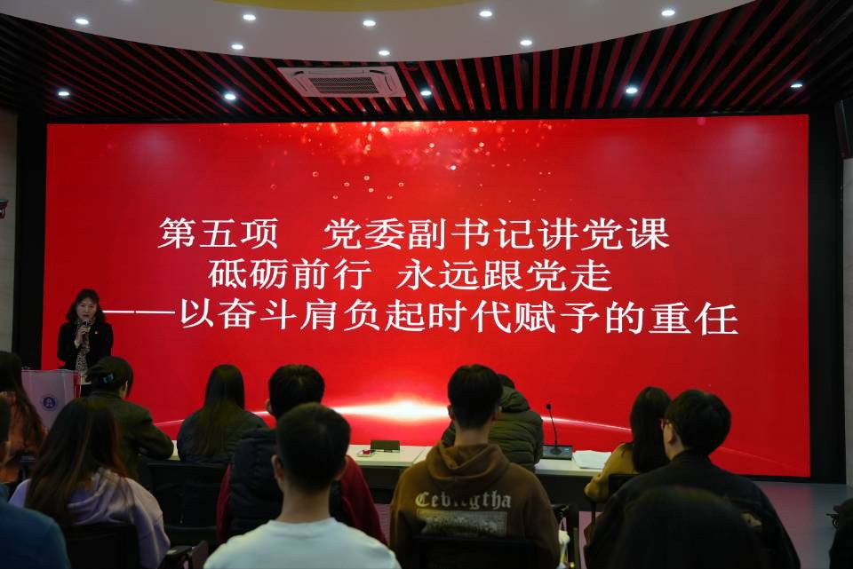 党委副书记以《砥砺前行,永远跟党走—以奋斗肩负起时代赋予的重任》为题讲授了一堂生动党课。在本次党课中,副书记带领大家深入开展党史学习,重温江姐精神,坚定理想信念。并强调要加强员工党支部的纪律建设,充分发挥其“思想引领”作用,政治理论学习是思想成长的前提,员工党支部承担着入党积极分子、重点发展对象、预备党员和正式党员的思想教育任务,要为全院员工们树立榜样,引领他们坚定不移地跟党走。
