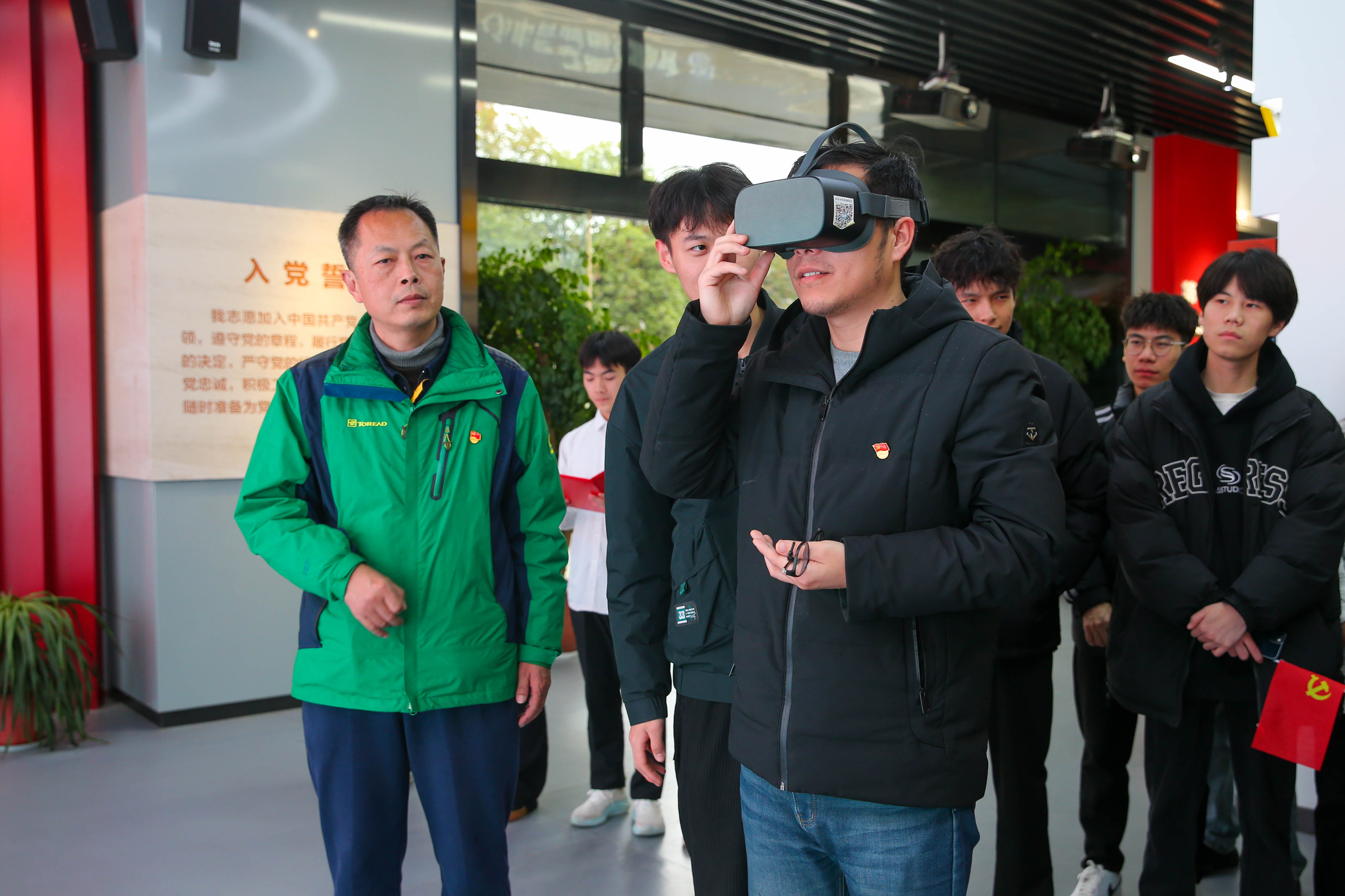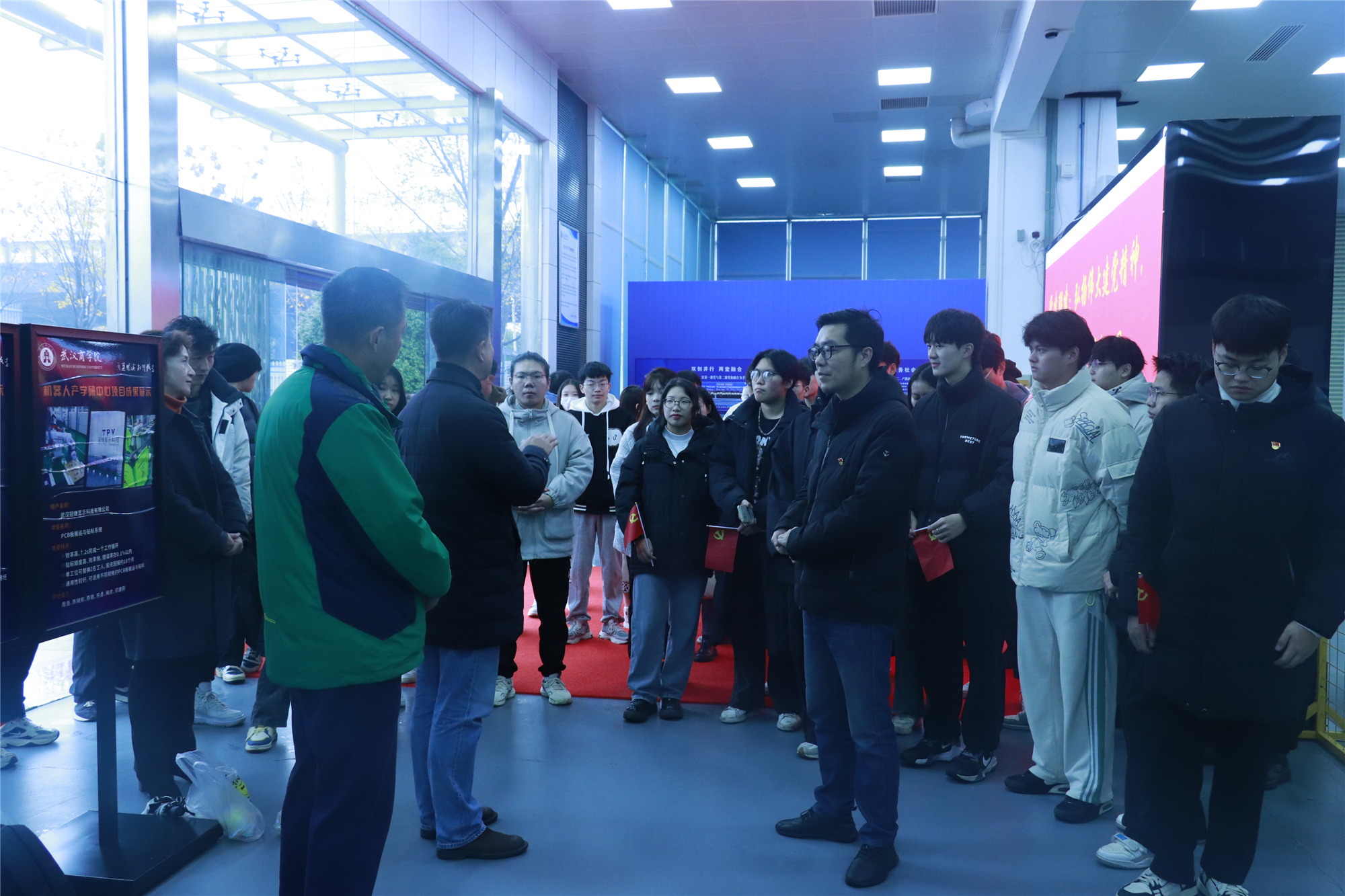 “公司智慧党建教育中心建立于2021年,是湖北省首个高校智慧党建教育中心,它以信息技术手段为主要载体,是高公司党建中心的创新之举……”讲解队曹语嫣为来访师生介绍着智慧党建教育中心。