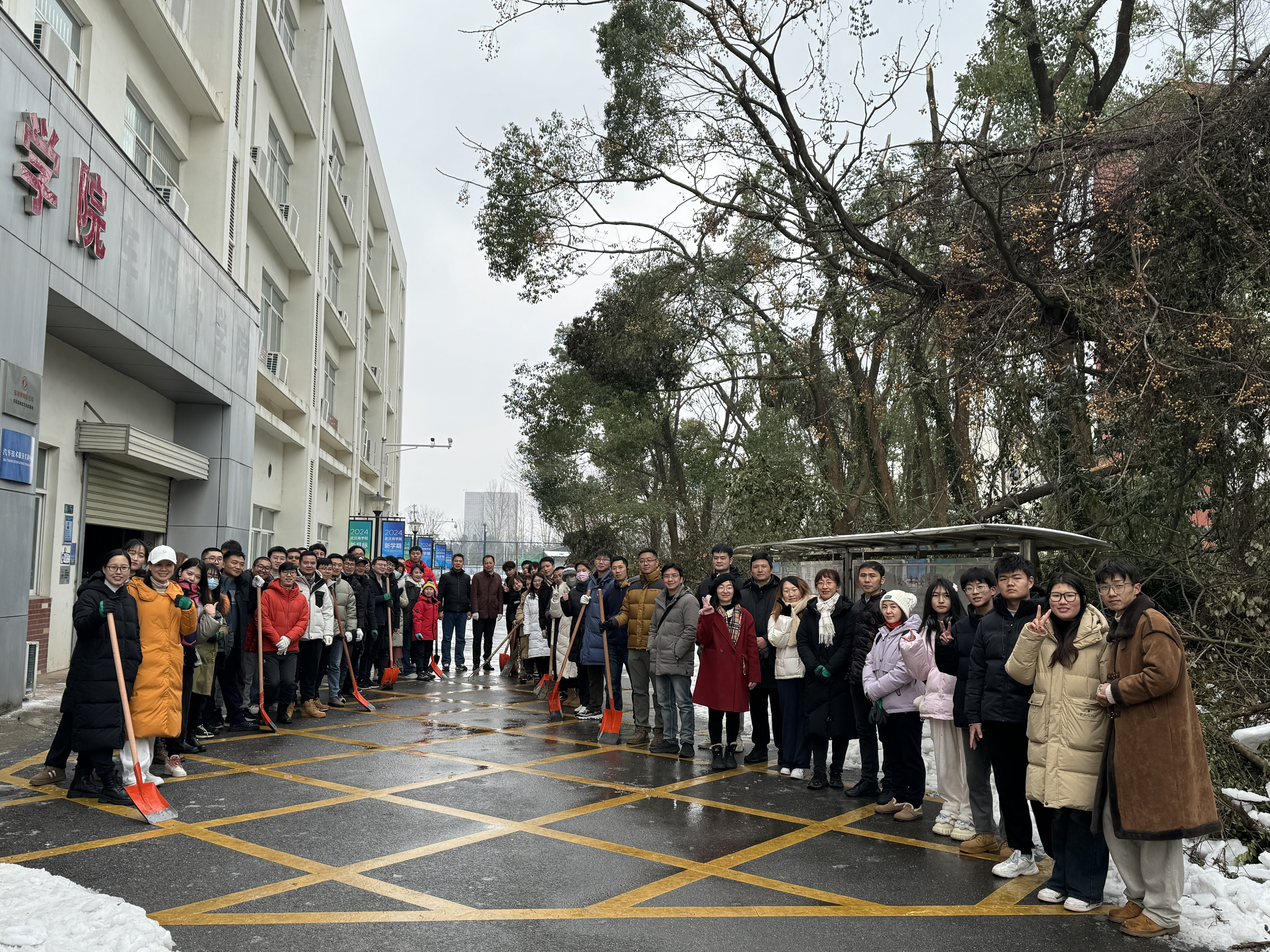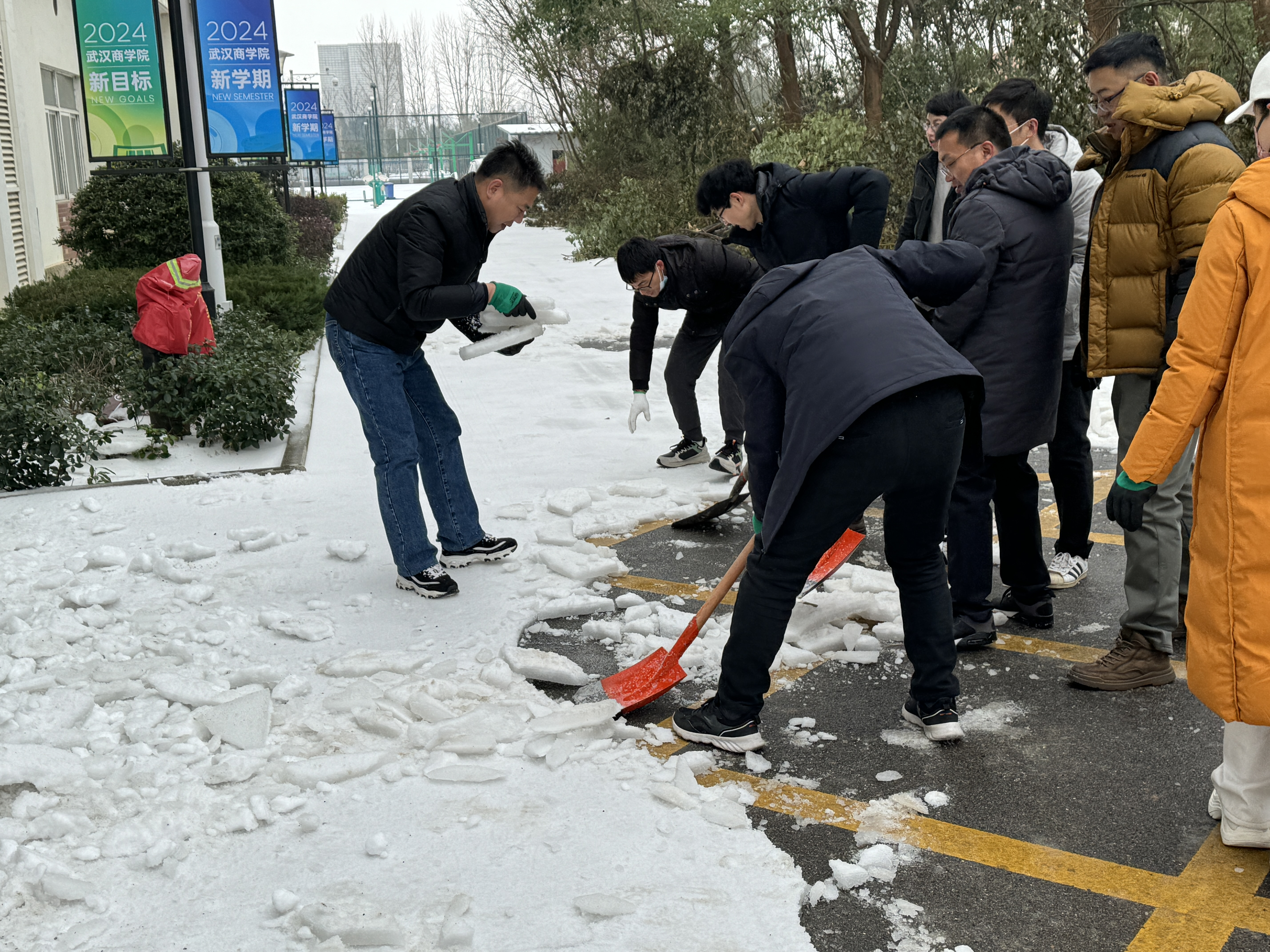 教职工们顶着严寒,以饱满热情投入到清积雪、铲冰层行动中。大家戴上手套,手拿铁锹、扫帚等工具,分工协作、默契配合,或铲、或扫、或推、或抬。经过两个多小时的共同奋战,公司楼前、主干道积雪全部清理完毕,为师生清扫出了一条条安全通道。