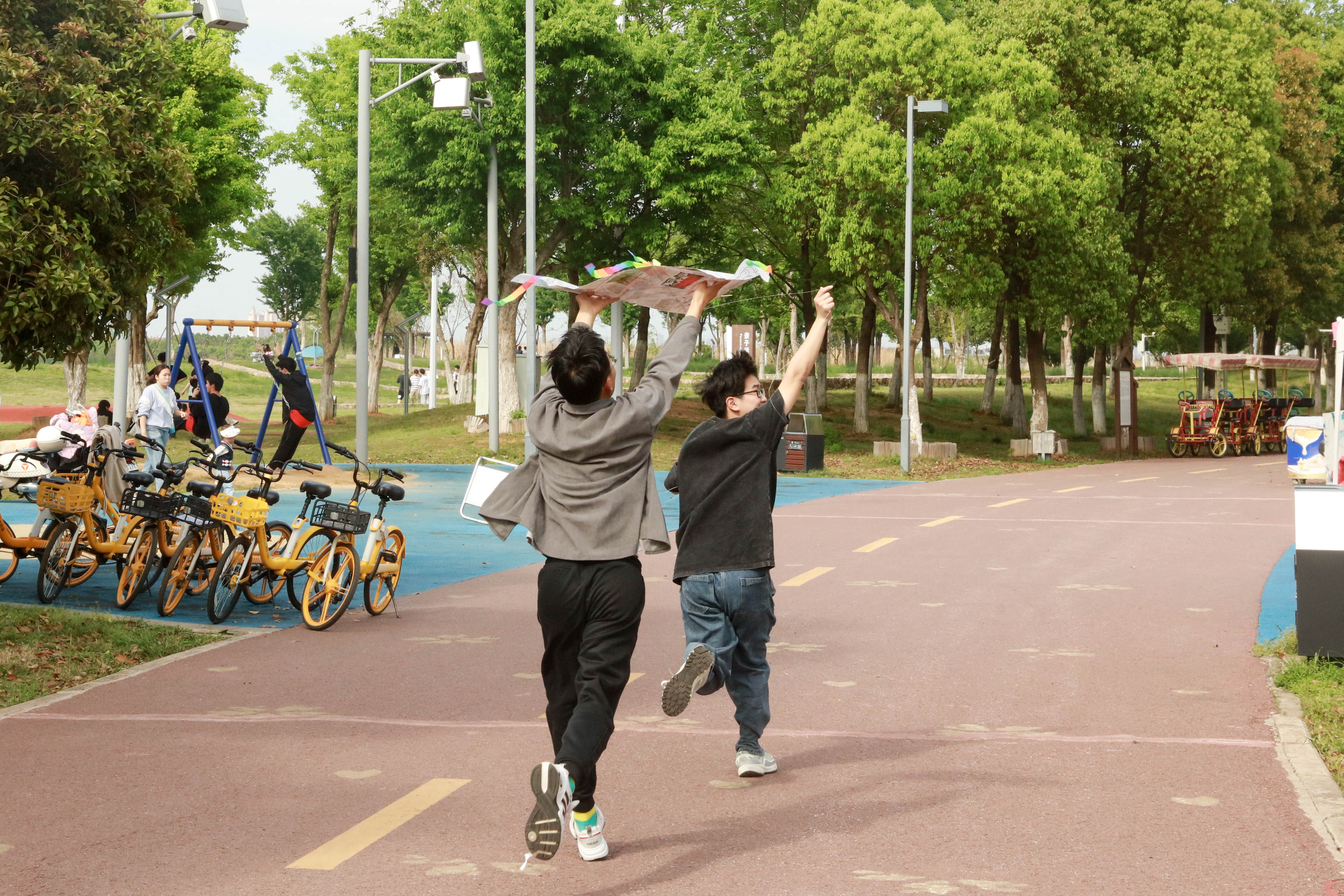 现场,色彩斑斓的风筝还吸引了不少小朋友的围观。“哥哥,报纸还能做风筝呀?”“对呀,报纸是可以回收利用的材料。像我们日常生活中的塑料瓶、旧杂志,还有旧衣服,都是可以回收再利用的物品哦。”协会成员耐心地为小朋友讲解绿色环保知识。