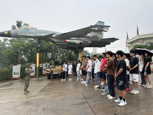 随后,同学们步入展览馆,立刻被室外展区陈列的歼15战斗机、长征五号运载火箭、99A主战坦克、59式130毫米加农炮等1:1大型军事模型所吸引。这些模型不仅展示了我国军事科技的先进水平,也激发了同学们的民族自豪感和爱国情怀。他们纷纷驻足,用手机记录下这些震撼人心的展品,留作纪念。