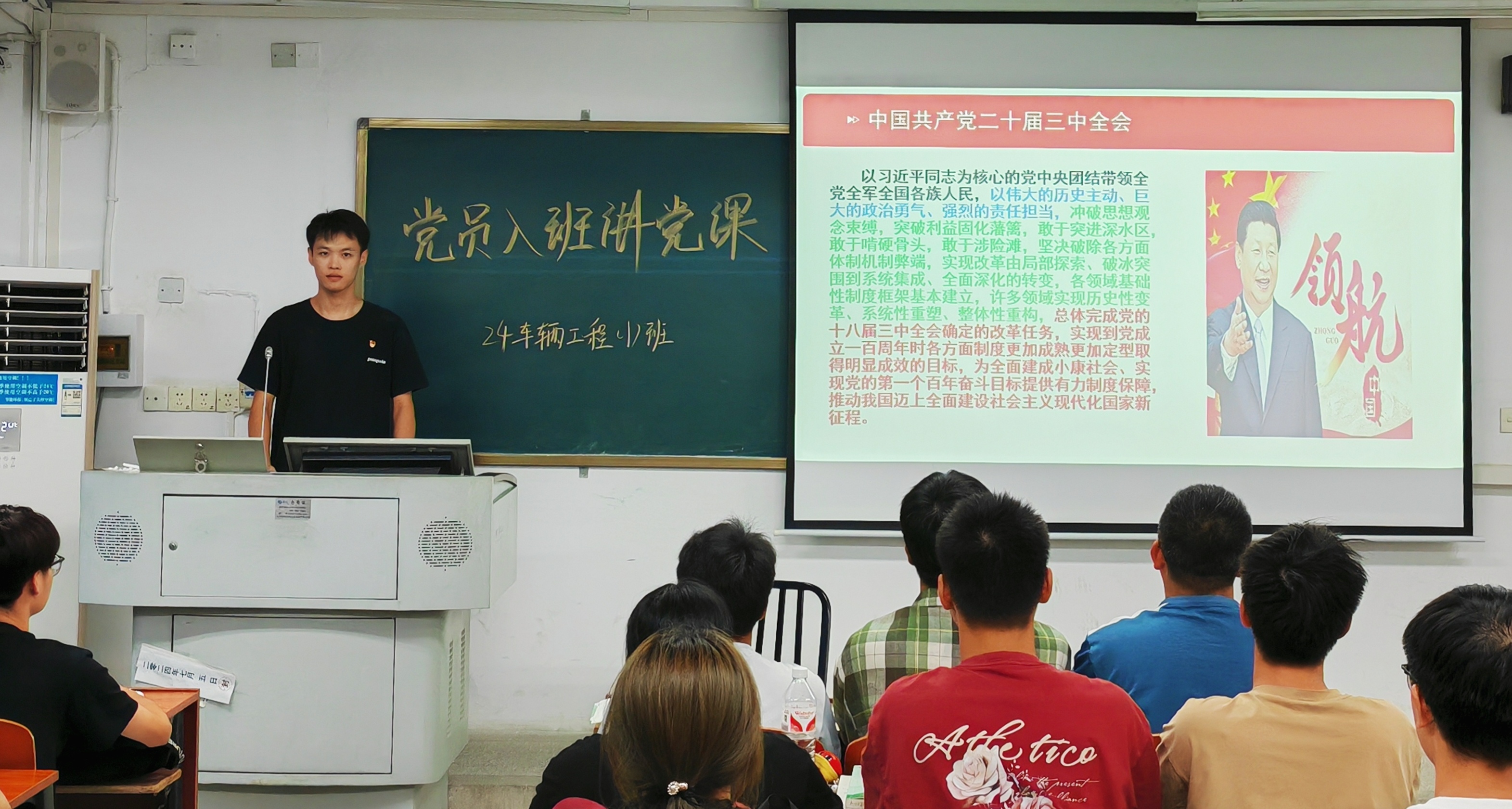 为深入学习贯彻党的二十届三中全会精神,推动全会精神在基层落地生根。bevictor1946韦德官网“青春心向党”党建工作组特开展“喜迎国庆 共筑华章”系列活动之“党员入班讲党课—学习贯彻党的二十届三中全会精神”主题宣讲活动。9月23日晚,公司7名员工党建工作小组成员共同走进2024级新生课堂,深入讲解党的二十届三中全会内容以及精神内核。