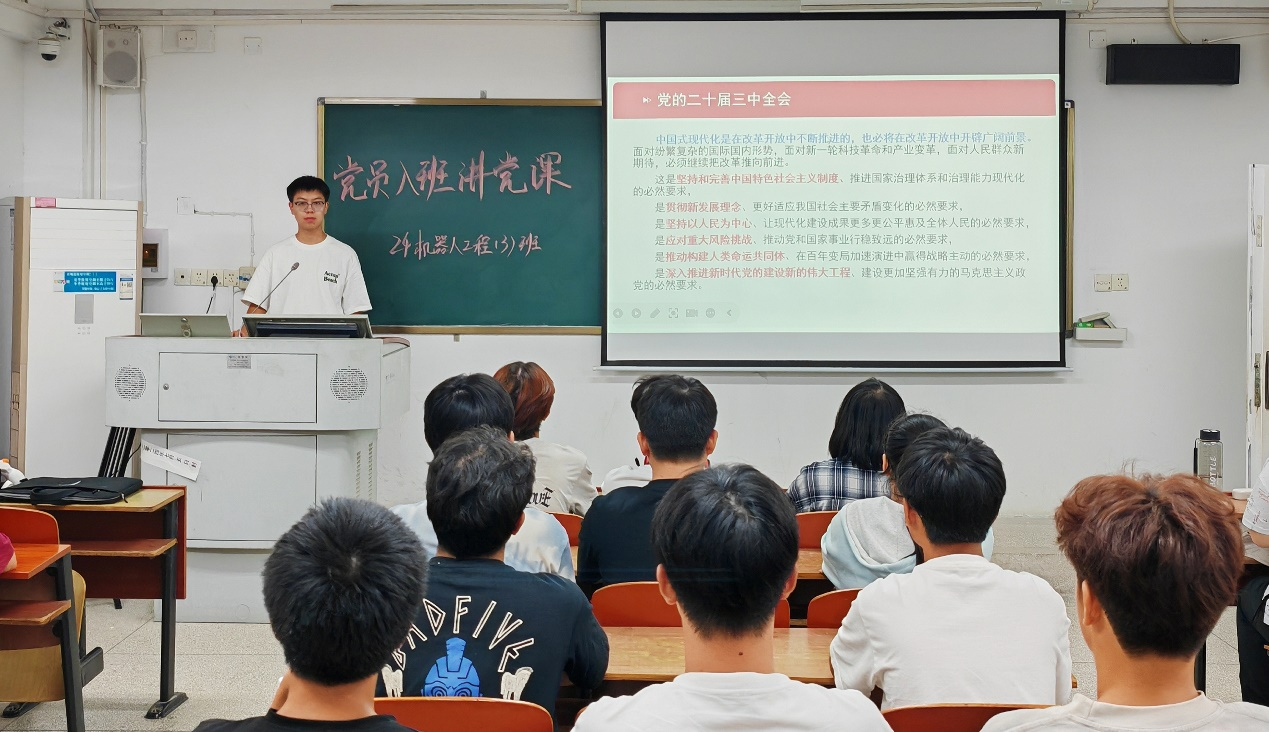 9月23日,为深入学习贯彻党的二十届三中全会精神,推动全会精神在基层落地生根,bevictor1946韦德官网“青春心向党”党建工作组开展“党员入班讲党课—学习贯彻党的二十届三中全会精神”主题宣讲活动。