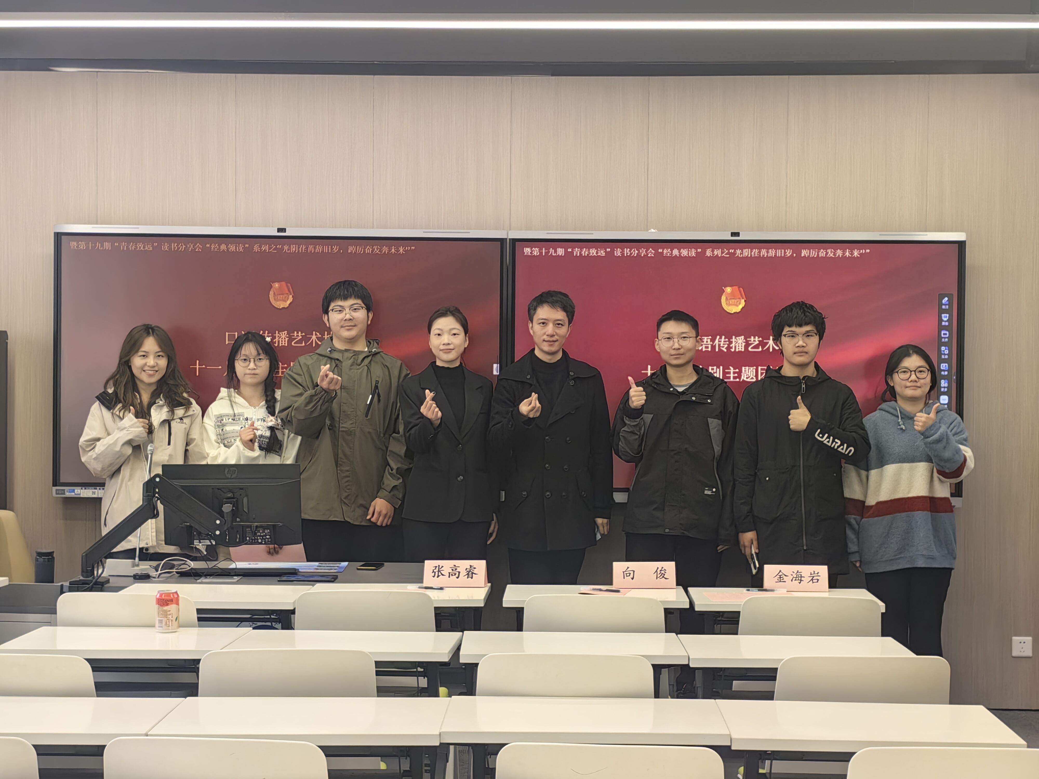 11月28日,口语传播艺术协会十一月特别主题团日活动暨第十九期“青春致远”读书分享会“经典领读”系列之“光阴荏苒辞旧岁,踔厉奋发奔未来”活动在南一207教室圆满举行。本次活动由口语传播艺术协会主办,通过阅读与交流,提升青年的文化素养和时代使命,吸引了全校40位同学参与本次读书分享会。