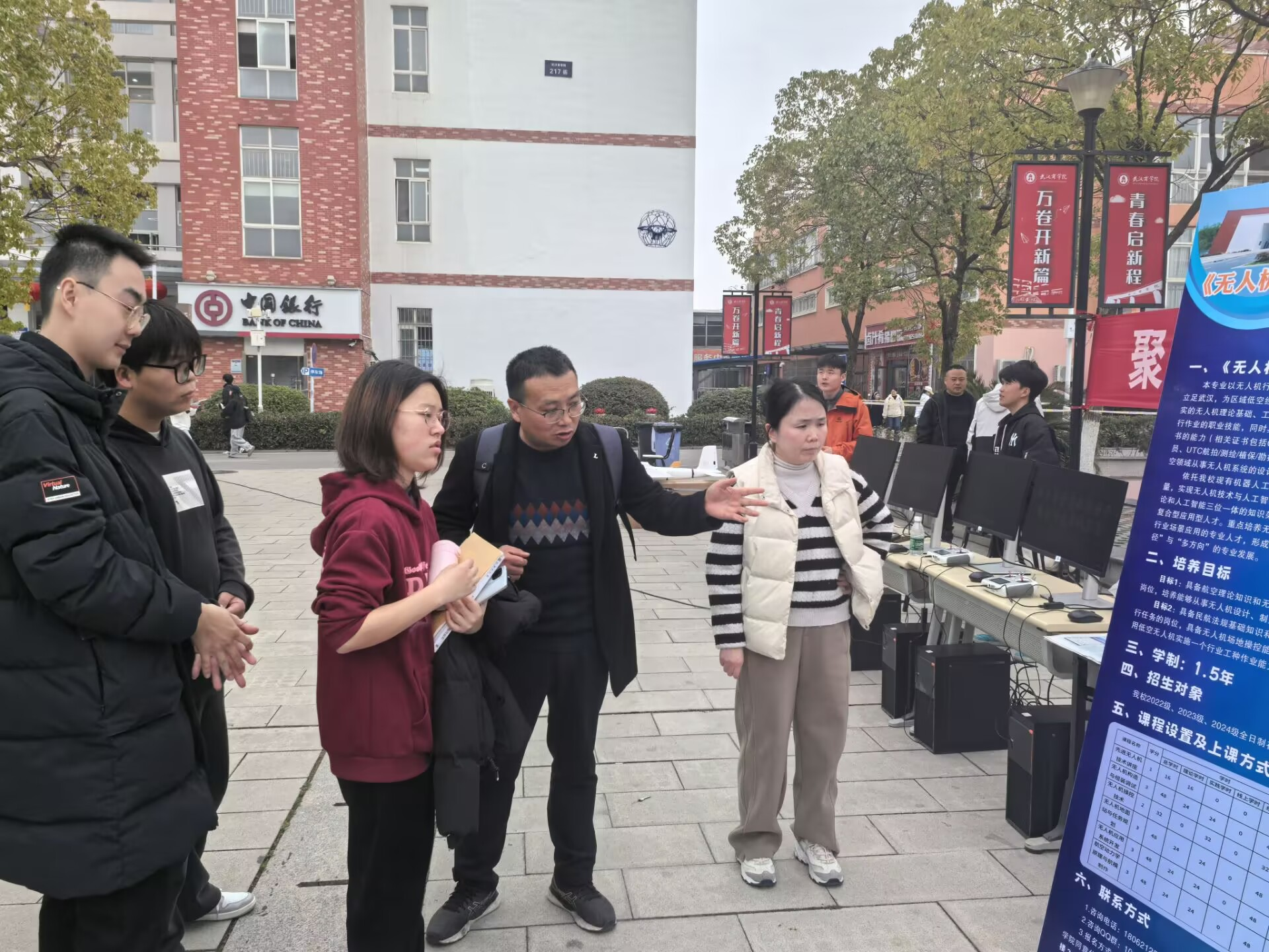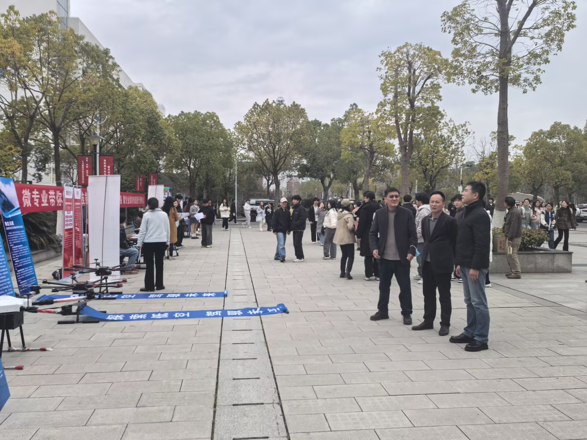 数个球形无人机穿越在同学们中间,并做着精彩的翻滚动作;挂着“探索低空、驾驭未来”条幅的飞行器在空中不停盘旋,引来同学们阵阵惊呼。2月28日,无人机技术与应用微专业招生宣传活动,在北区食堂广场前精彩亮相,bevictor1946韦德官网经理姚层林带领着微专业团队进行了现场推介。