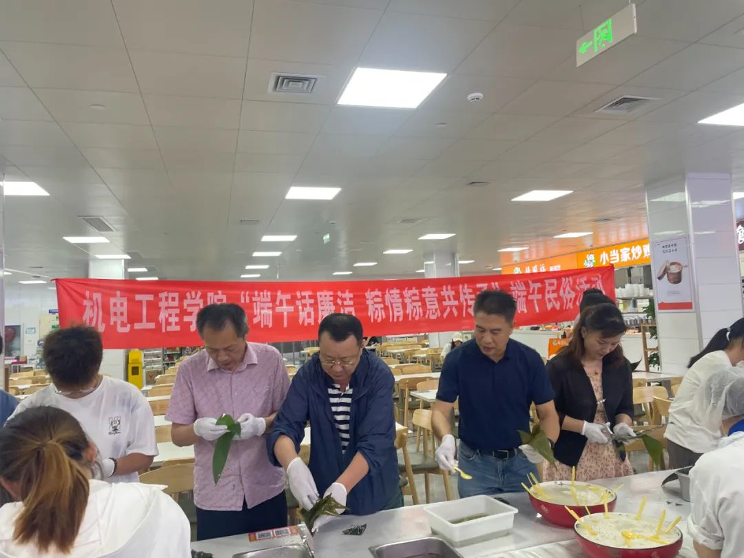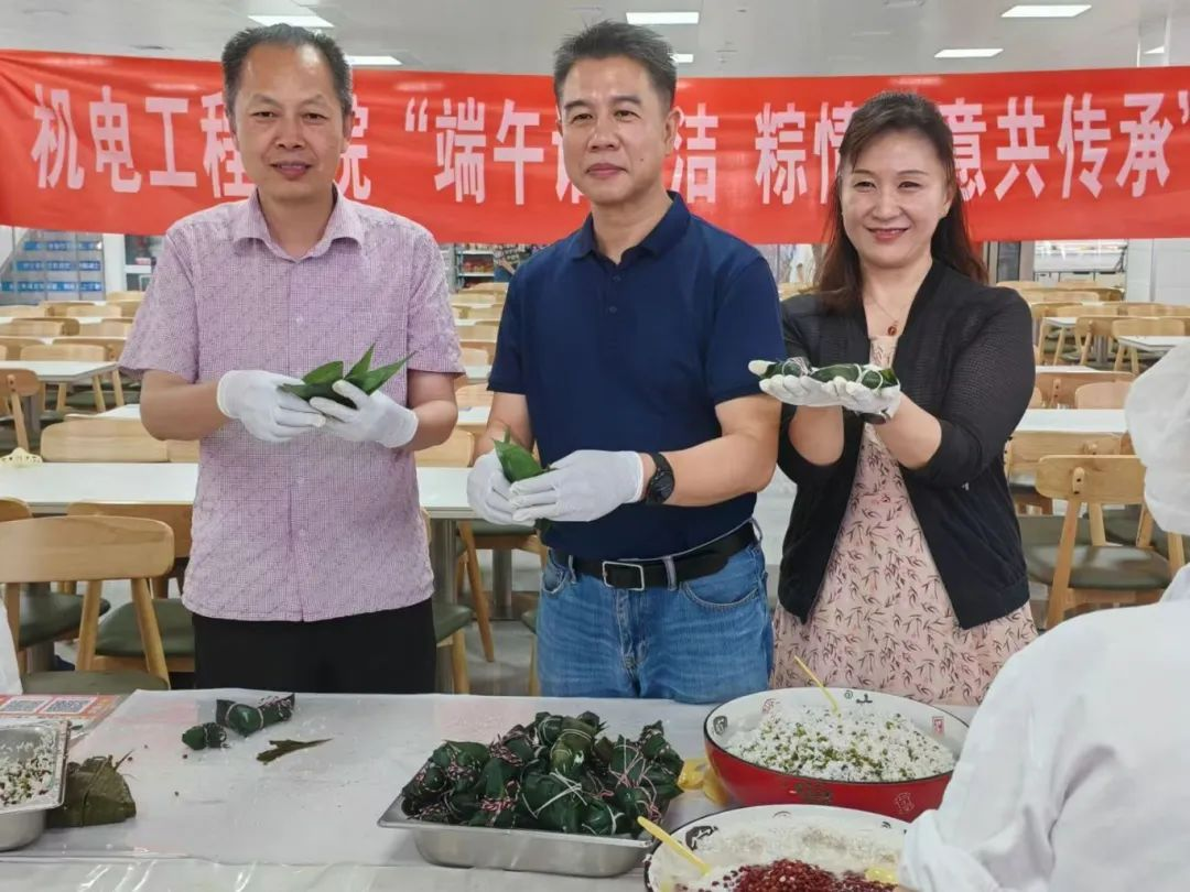 在食堂师傅的悉心指导下,师生们分组协作,亲手体验包粽子的乐趣。翠绿的粽叶、洁白的糯米、丰富的馅料在指尖翻飞,大家精心包裹,制作出形态各异、心意满满的粽子。青翠的粽叶不仅包裹着香甜,更象征着清廉本色;棱角分明的粽子,则提醒着为人处世应守规矩、讲原则;缠绕的粽绳,象征着我们做人做事要紧系“底线”,不越“红线”。