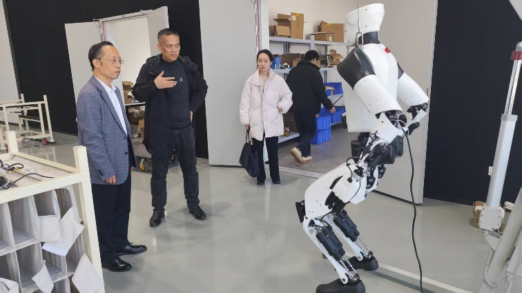 在荆楚人形机器人公司,调研团队实地参观了企业研发中心和生产基地,详细了解了企业自主研发的荆楚系列人形机器人的技术特点与应用场景。座谈会上,余刚书记指出,深化校企合作是推动产教融合、提升人才培养质量的重要途径,他提出几点校企合作构想:一是共建员工实习实践基地,为员工提供真实工程环境下的锻炼平台;二是建立人才输送通道,为企业发展提供专业人才支撑;三是共建AI辅导员机器人研发团队,汇聚校企双方技术力量开展联合攻关;四是推动教师团队参与企业实际项目研发,提升团队队伍工程实践能力。